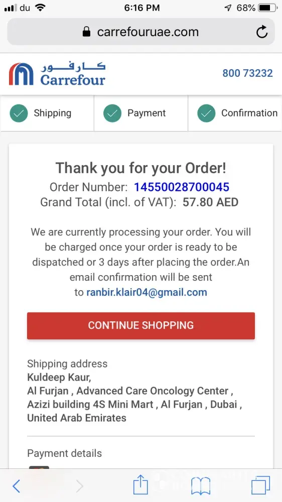 I made online shopping back on May 6, 2019, from carrefour - city mall (Amman) for the amount of JD 161.23. The delivered items were for the amount of JD 98.17 (difference of JD 63.06), but I was charged the full amount of JD 161.23. I live in UAE and when I was in Jordan I contacted Carrefour head office at city mall with a lady called Wa'ad. I had to go several times there and talk to her during my summer vacation. I have called her as well. She does not respond to me and my money was not returned to my credit card. My order No. [protected].