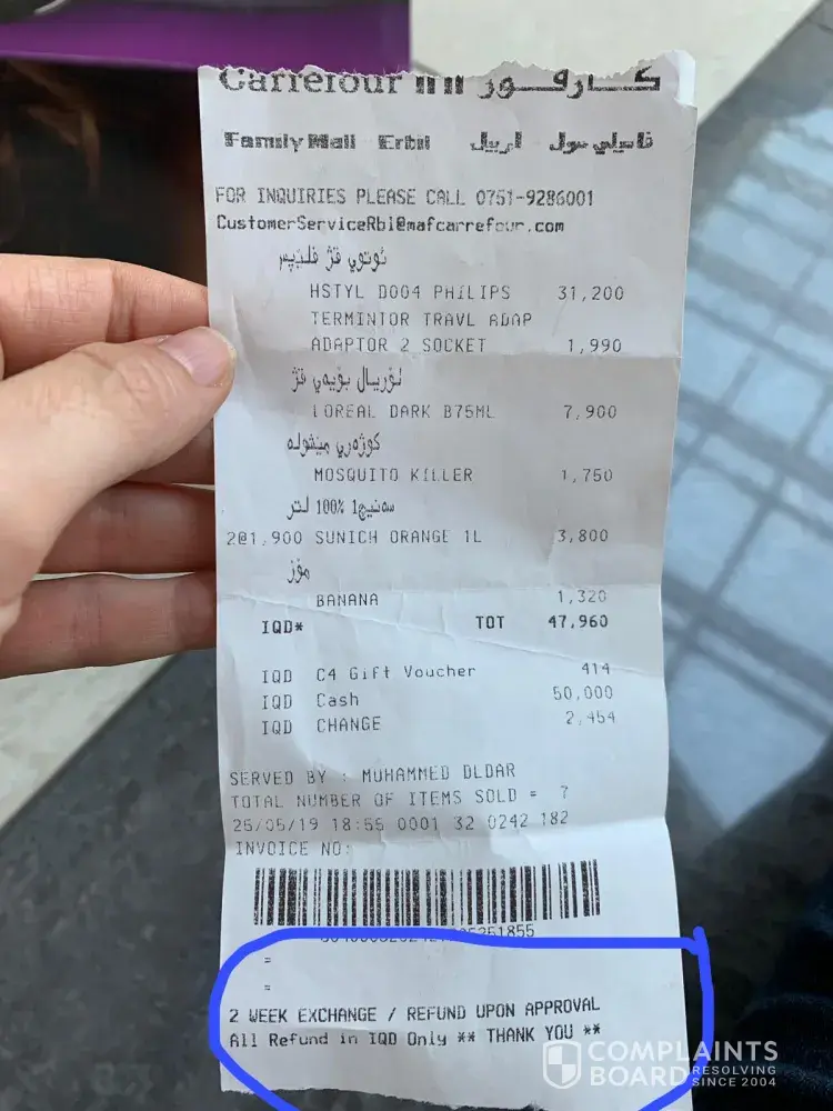 d) I contacted carrefour's contact number to report this issue on May 2nd complaint number [protected] and ever since received a very poor response to this major mistake that caused a great inconvenience.