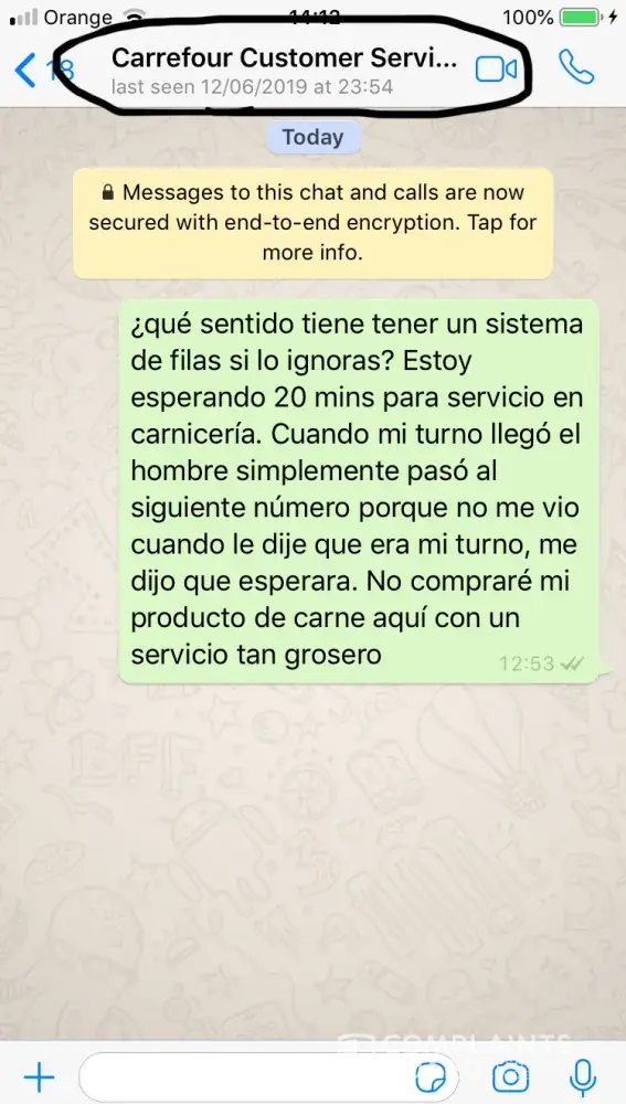 When trying to complain to the service number provided, I can see (via WhatsApp) that nobody has even looked at this complaints number for 10 days! (see photo attached). This actually says everything - that Carrefour care very little about their customers or their problems.