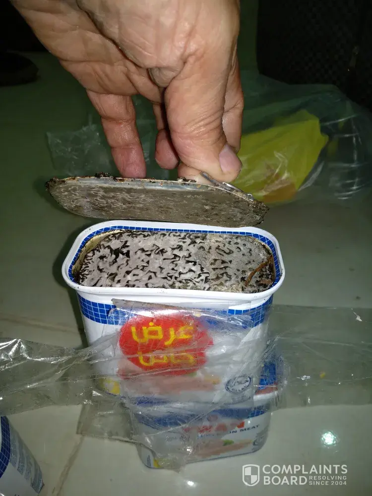 I bought a canned beef that has been damaged and open. Yet it displayed for sale at a discounted price. I bought from Amman Jordan. Not noticing the dammage because it was rapped up with plastic tape. I took it and attempted to open it for my family to eat when I discovered it has been dameged and exposed to air. Which made it rotten and full of warms. This is unsafe business practice that endangers people lives. And Putting dammaed and contaminated food prduct for sale at discounted price is violation of food and drug administration laws. I am submitting a complaint to department of commerce in Jordan for unsafe and unlawful violation.