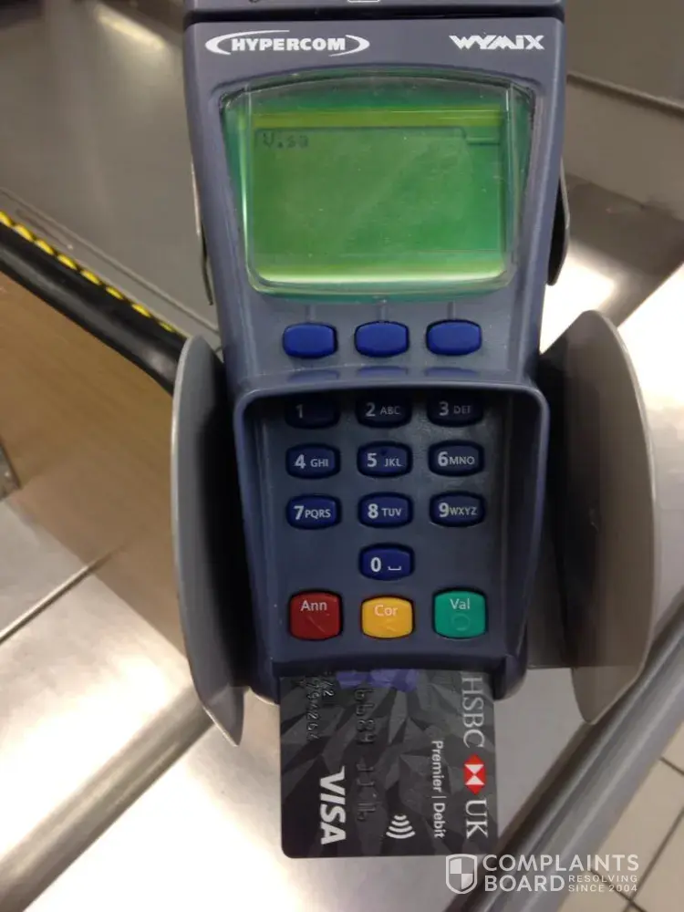 Please find attached a copy of my receipt from Revolut (first card that was declined) and images showing me having to pay using my HSBC card.