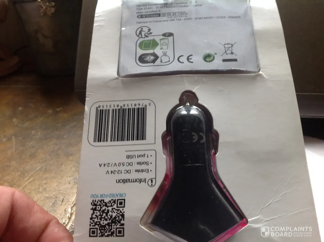 mobile phone car charger bought in carrefour hesdin. northern france.