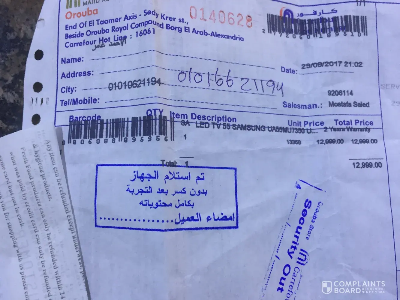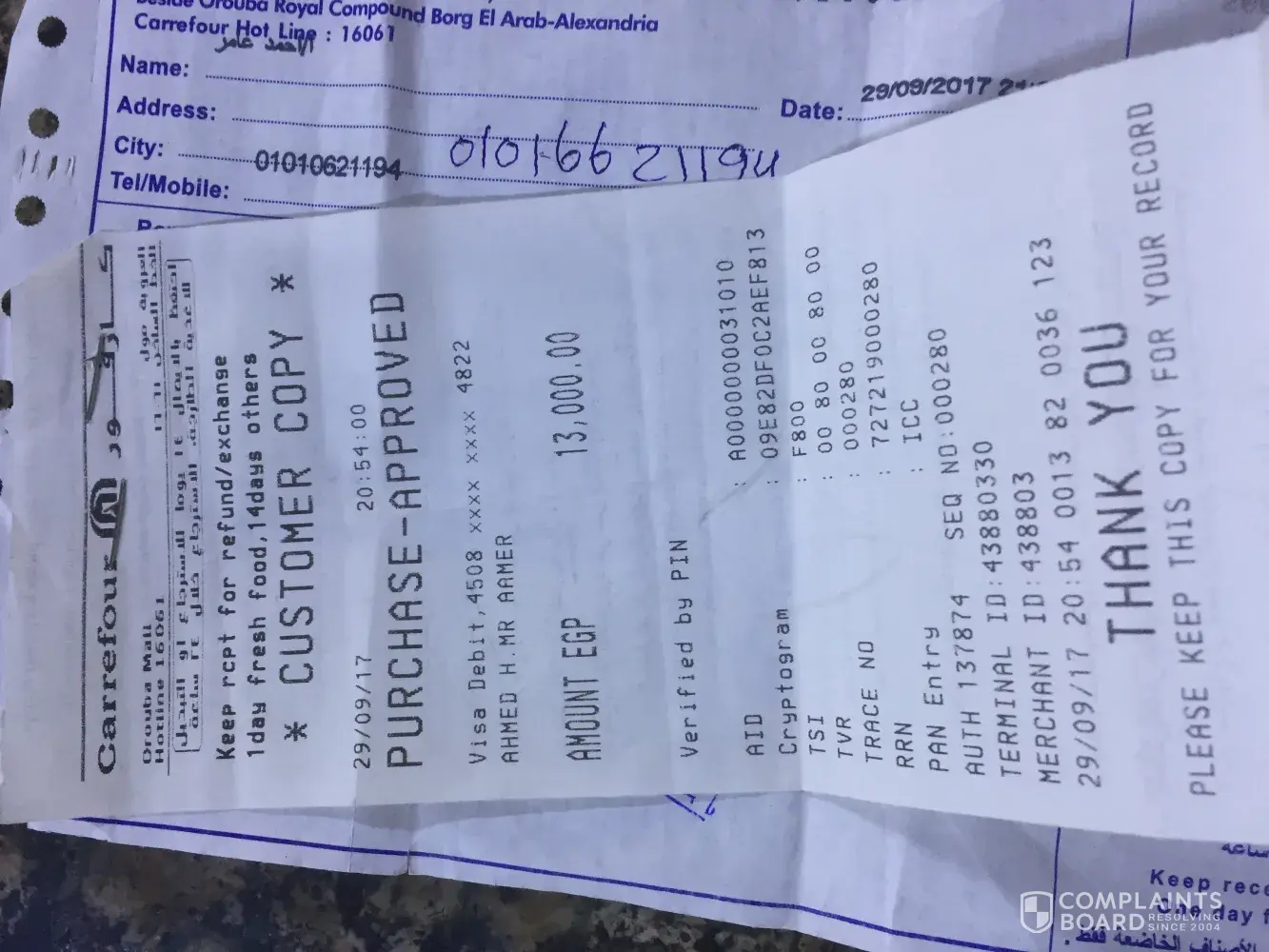 As you can see, the service I got from CARREFOUR-Egypt is not acceptable and tarnishes CARREFOUR reputation, and simultaneously abuses my rights as a customer.