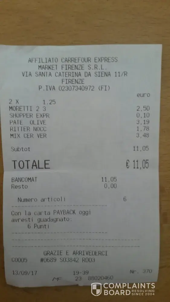 We have been purchasing our groceries since we have been living in sanremo and after todays incident we are no longer going to shop at this store ever again.