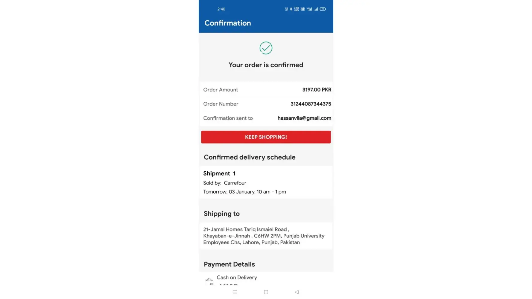I purchased Samsung QLED from Carrefour application on Jan 14 (during the 20 years anniversary offer in Egypt). The order was placed in Jan 14 and the offer was going to be over by end of Jan 15. Today Jan 17, I received this message: