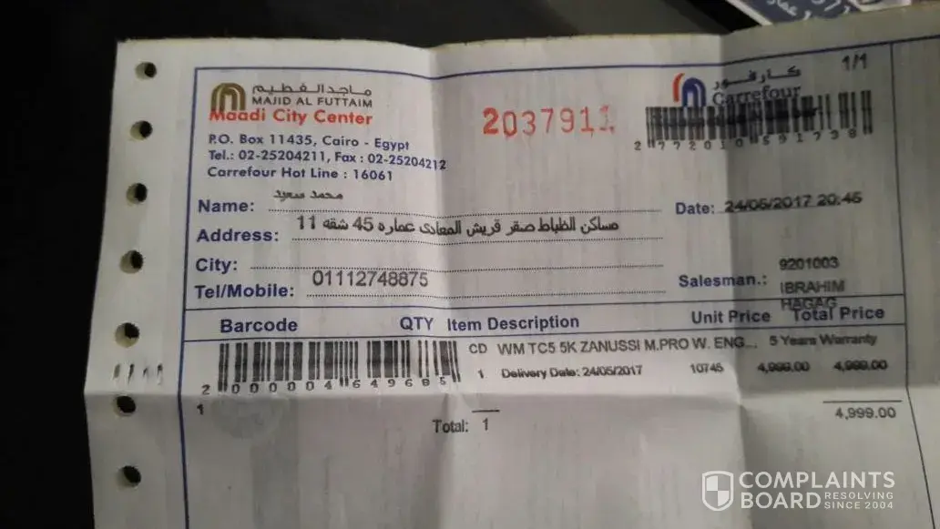 On 24/5/2017 I bought a washing machine from carrfour maadi located in cairo, egypt, sales man representative inform me that machine will be delivered during 3 days, on 28/5/2017 carrfour called me that delivery will be on 29/5/2017, but they called me 29/5/2017 that machine will not be delivered today and delivery date in unknown.