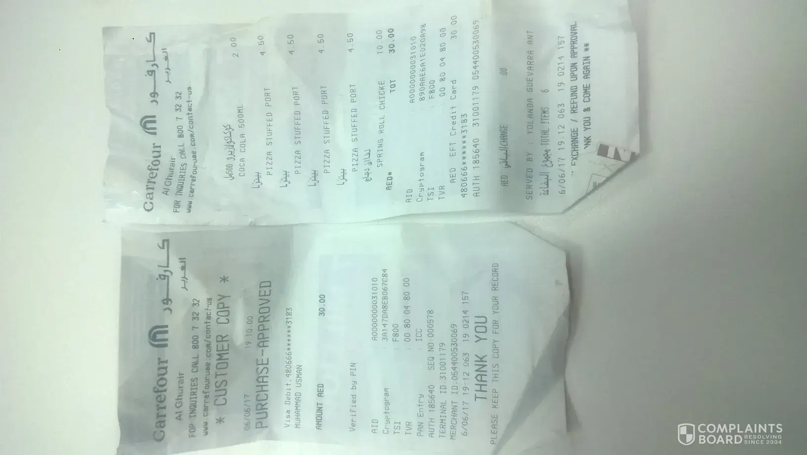 Carrfour mirdif city center...I bought a total of 4 items including the delight sq grill pan. But unfortunately theres no barcode. She doesn't do anything but set aside the item and just told me "no barcode". My other items was just finish to scan. She doesnt even call any staff for assistance instead i go back inside and took another one with barcode. Its fine. But when she just finish my transaction i told her "i have myclub" that supposedly ask me during transaction but she doesnt even care about that. I know my bill was just only 64.10 aed only but i think that was bad customer service. Theres no cue. Theres no rush. No customer after me but she doesnt care about me.