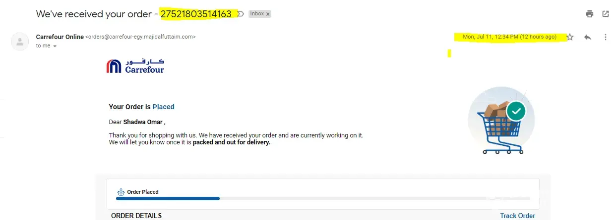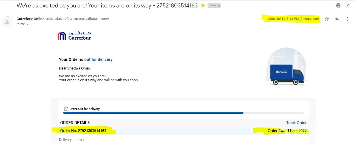 I called carrefour for the past 3 days, they said the order have been dispatched and it’s delayed, they apologized and promised to have a communication as soon as possible, still nothing received no information and no delivery.