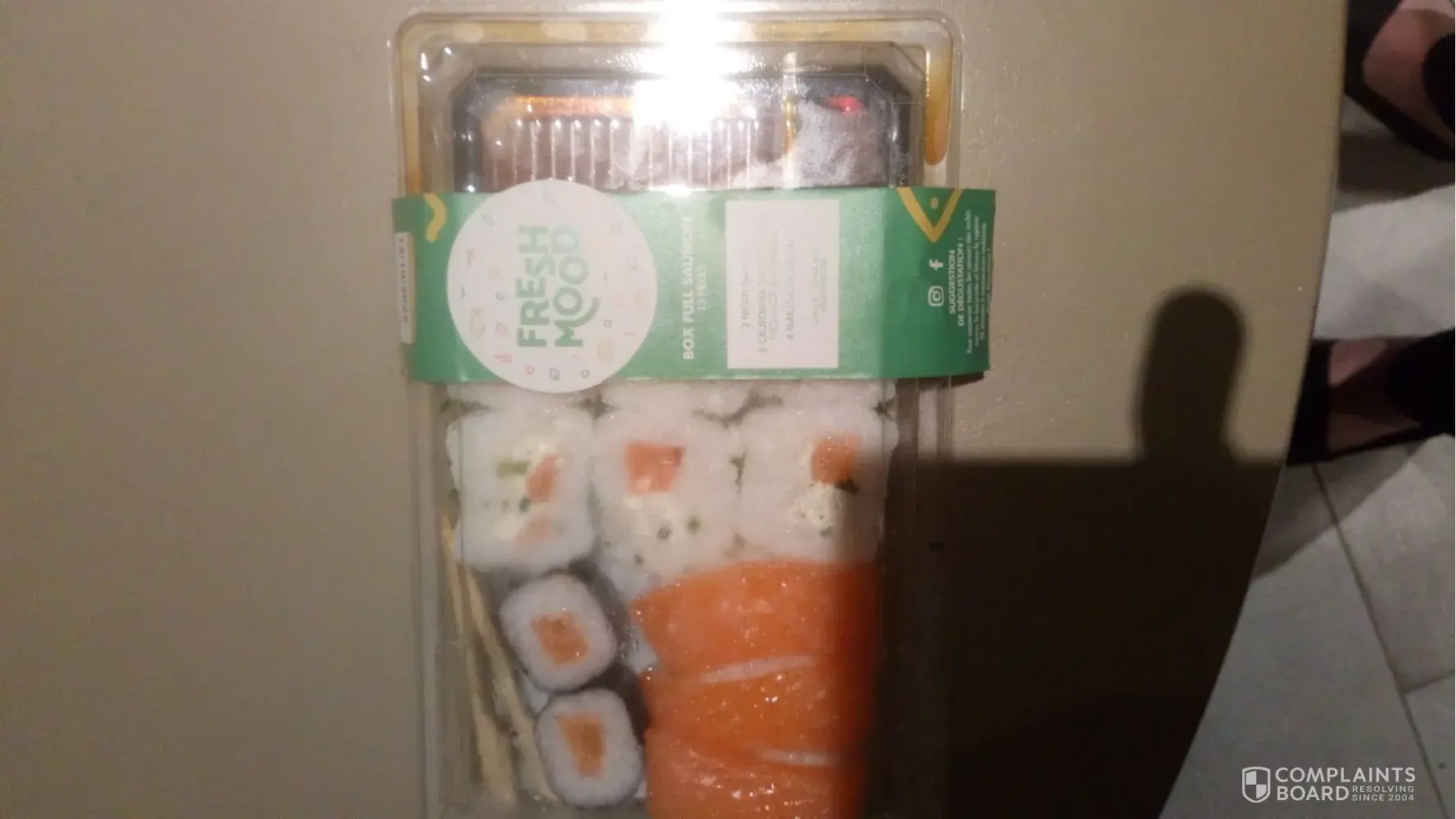 I bought a box full salmon sushi set at Carrefour City Antibes on Saturday 08.10.2022 19:49 for my mother.