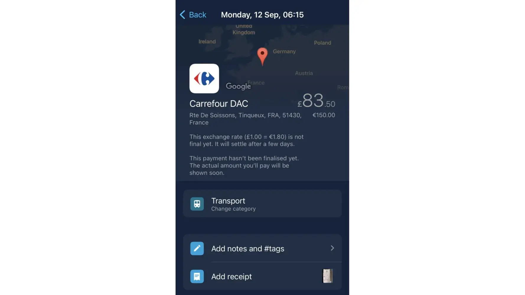 Monday 7th September at 7:14 we attempted to get fuel at carrefour tinqueuex. But my account did not have the €150. However, carrefour has a pending transaction on my bank account for £83.50 since that date which has not been recredited, this has then meant other payments have not been able to be completed.