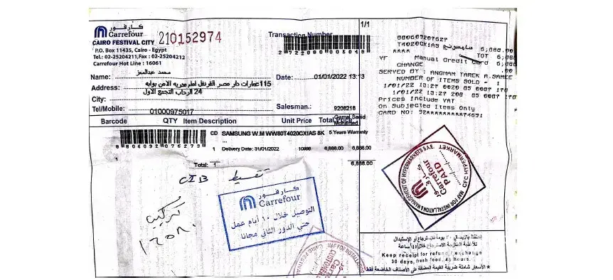 I bought a washer from Carrefour Egypt CFC on 1st of Jan. 2021 till today they did not deliver it and when I call the man which they give his phone no. to me he was very aggressive with me and gave me many times a date that the washer will come in couple of days, yesterday I called him and he replied after 4 days calling him and not pick his one and told me that the washer will come next week, than I told him that he always reply to me with the same message and how you sale me something you did not have in yr store, he told me you can take yr money or go to the Consumer Protection Agency