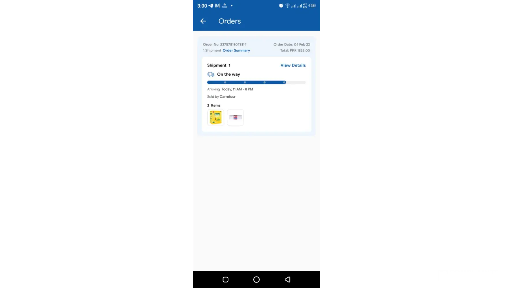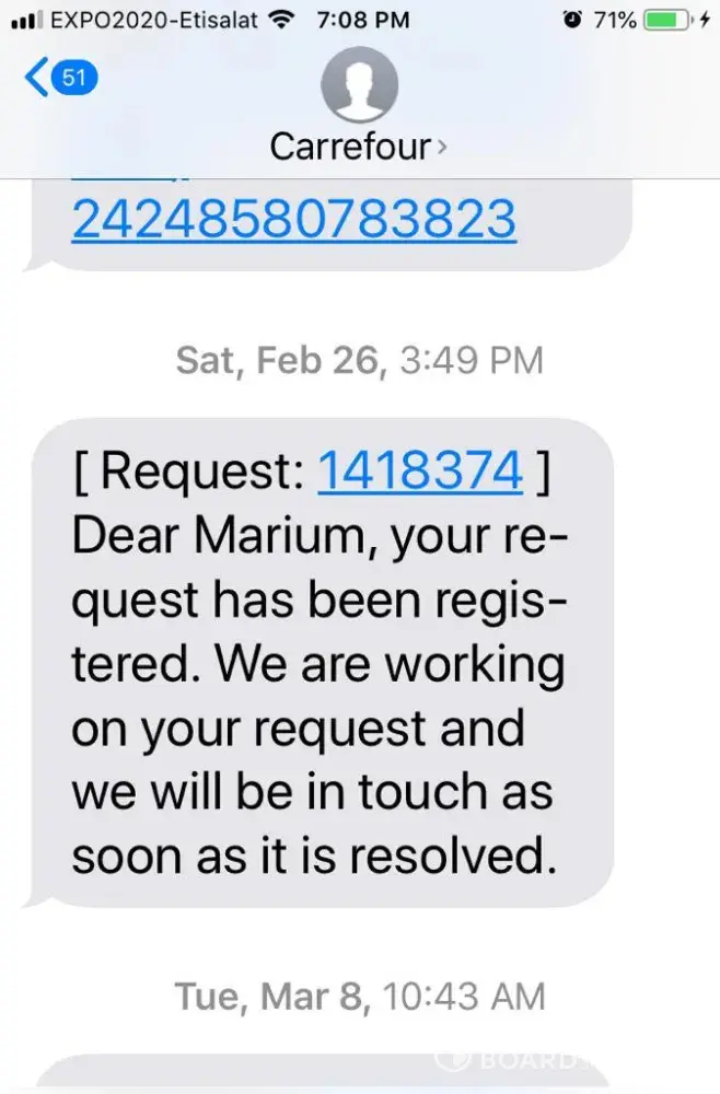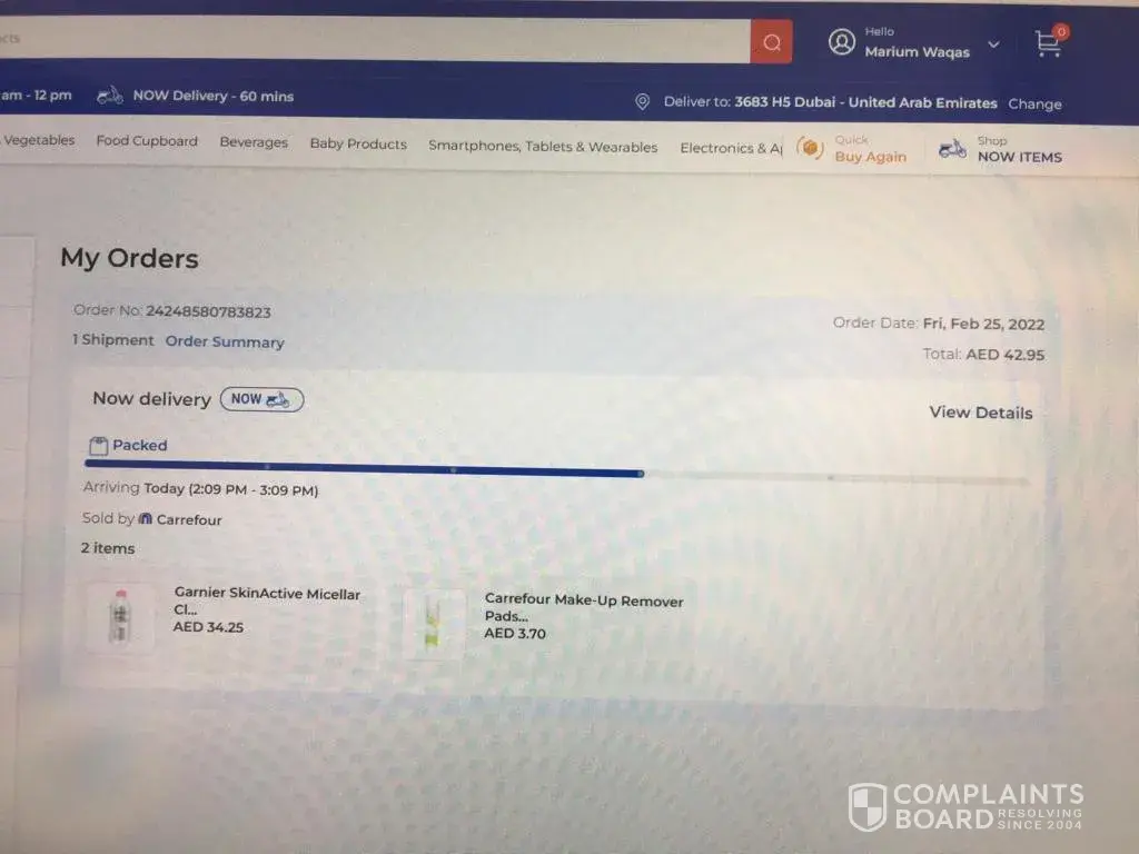I ordered personal use items from carrefour online on 24 Feb 2022 same day delivery. I waited for few weeks and then started calling and messaging customer care via calls and whatsapp. I eventually cancelled the order and request for refund they said it will be refunded very soon. They sent me confirmation email and sms that my request has been submitted. Since then I am tired of calling and messaging them it seems I will not be refunded.