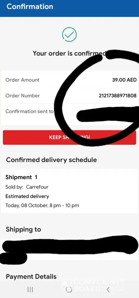 I have placed an order for grocery items last 2/11/2021 with order number [protected] via mobile application. It was divided into 2 shipment the 19items were supposed to be shipped that day from 6-7pm (labeled Now delivery) then the 10 items shipment on the next day. 3/11/2021 I received the 10 items I ordered but did not receive the 19 items which cost 184.93AED. I called customer service and was advised that they created trouble ticket for it with reference 735533. I called them everyday and even sent an email via their mobile application and did not receive any response or call back from them. The agents kept on saying that a specialized team is already looking into it and will give me a call back which I did not receive. This has been very frustrating especially when I saw the comments on their FB page regarding bad customer service and unshipped orders that were paid and not refunded for months. This must come to an end. Carrefour is scamming people already. I want to know how I can formally file a complain for future consumers.