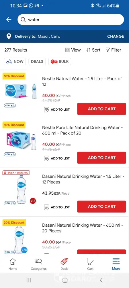 The prices which I purchased on from the mobile app for Nestle water package was EGP 40 while it was surprise when I received the invoice the price was changed to EGP 46.5 which for sure will affect the transparency policy of Carrefour and also the trustable image of the organization.