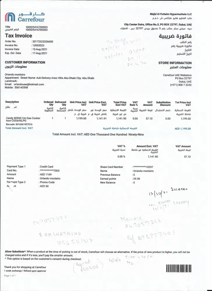 Desired outcome: I need a call from Carrefour head office to explain my issue even i can come to your head office