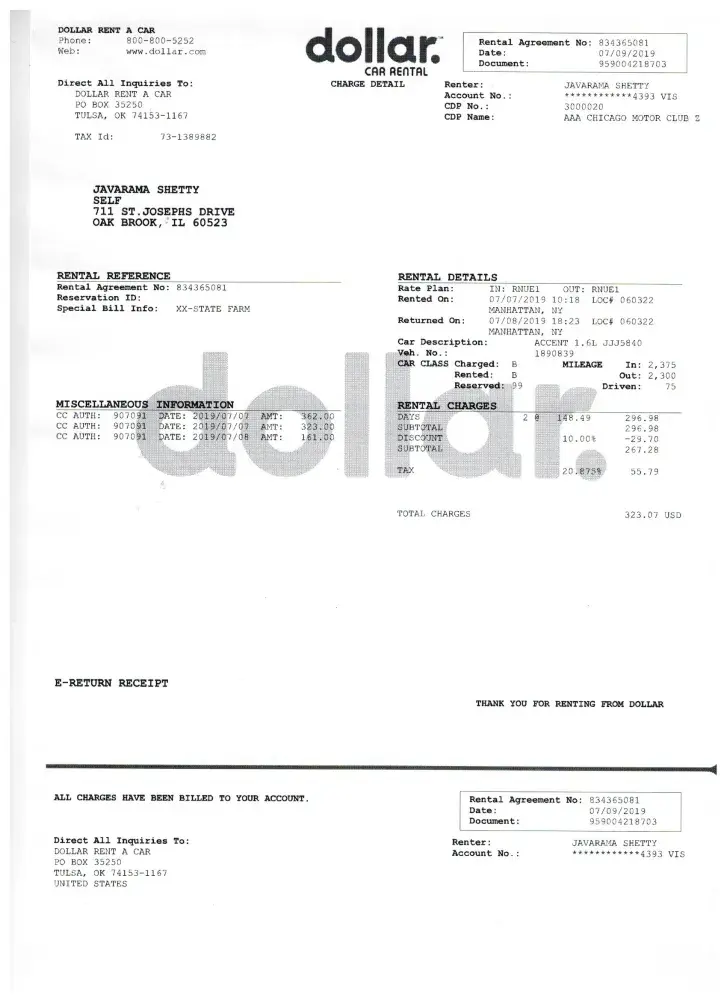 Please find in the attachment receipts from both Rental car.com as well as Dollar car rental.