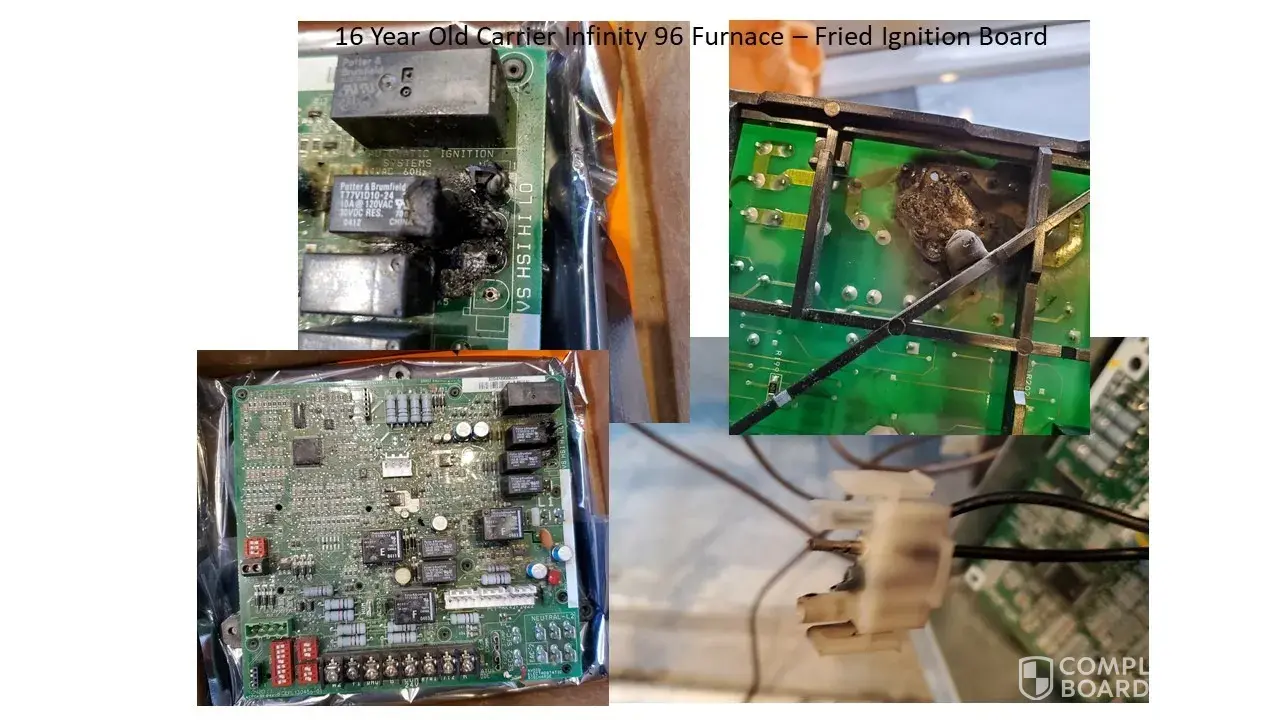 I called for Emergency service. contractors came in at 10:30. After diagnosing, they found it was "A fried Ignition board" The 15 amp breaker in my panel was not tripped. I have kept the parts as evidence and as you can see from the photos there was a significant fire.