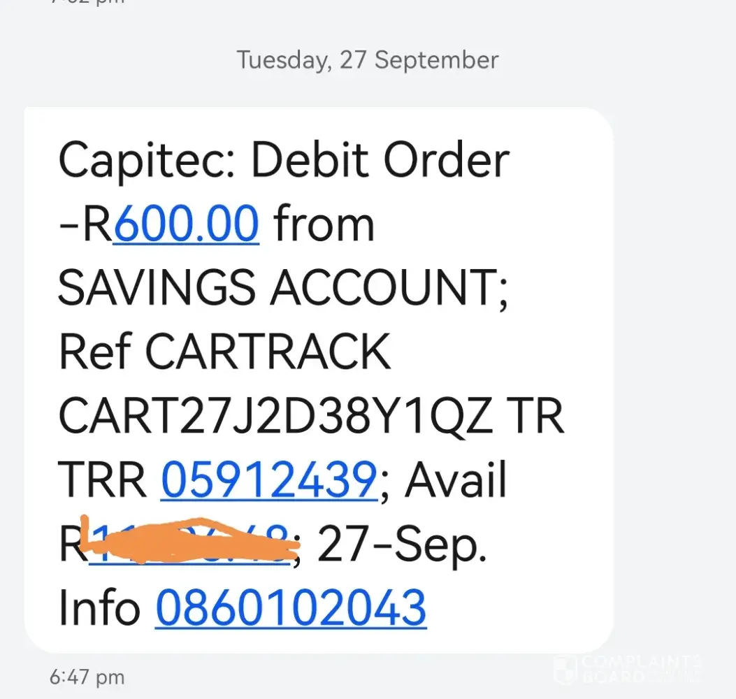 I am unhappy that cartrack keep on taking money from my account even though i have already settle their outstanding balance. I have received a Cancellation of contract letter. I was advised telephonically when I pay the full amount of R471.90 I won’t owe them anything. They went and debited my account twice as I made arrangements to take half on the 18/07/2022 and the half on the 26/07/2022 which they did, however on the 25/07/2022 they debited my account for my normal instalment R182.30 I reversed it.I called them again to advise about the arrangement and it was deducted, all they did was apologise and said they will cancel the account and the payment of R182.30. I received the Cancellation of contract letter on the 2022/08/15, however I am now being harassed by getting calls, sms, e-mails and even WhatsApp messages from Cartrack on a daily basis demanding I pay the R182.30 and this now 2 months after I finished paid them and closed the account.How many times am I still gone receive threats from them. I don't know what to do anymore I am not going to pay an account that was finished paid and cancelled. Looks like a bunch of incompetent idiots.