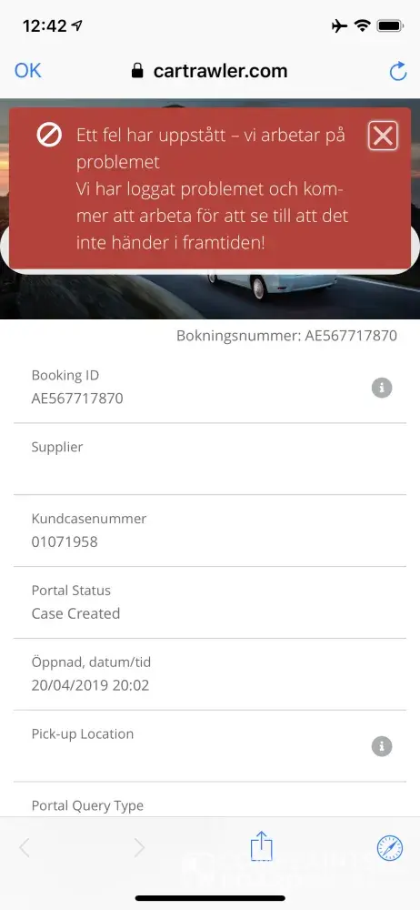 car hire was not provided on arrival