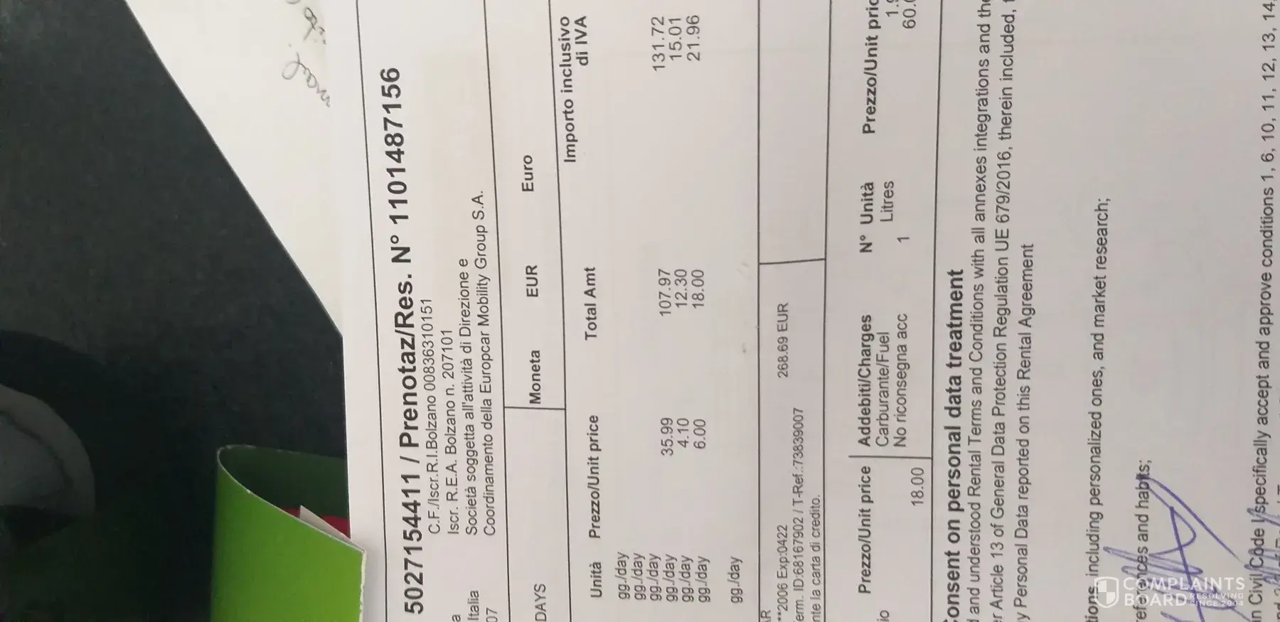 NU blijk uw partner Europcar nog eens 168.79 euro te hebben afgehouden Res [protected]..