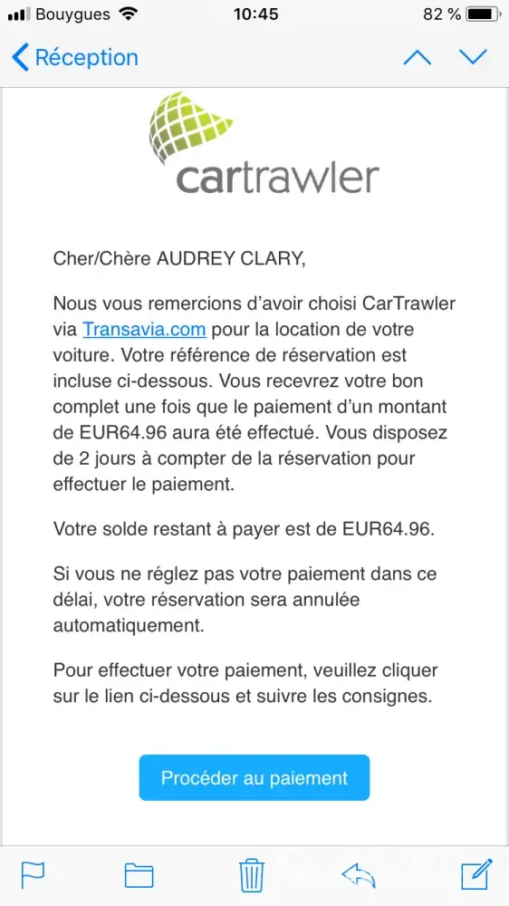 Cartrawler - please contact me to remedy what might be a mistake otherwise I have jus been conned by you !