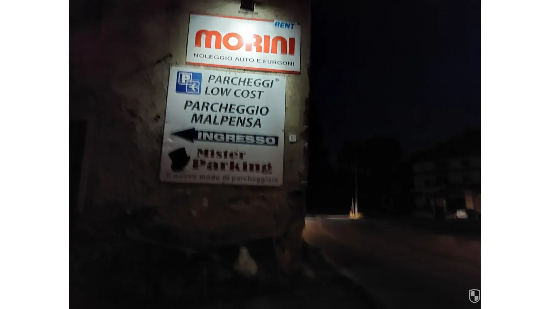 He was able to arrange this, and as it was getting late and we seemed to have no other option, we went along with this suggestion, although we thought it inappropriate. So, we got on a minibus to - Mr. Parking, Parcheggi Low Cost, Parcheggio Malpensa (pics attached), the trip took around 20 minutes, we then transferred to the drivers car, and he drove us to our destination.