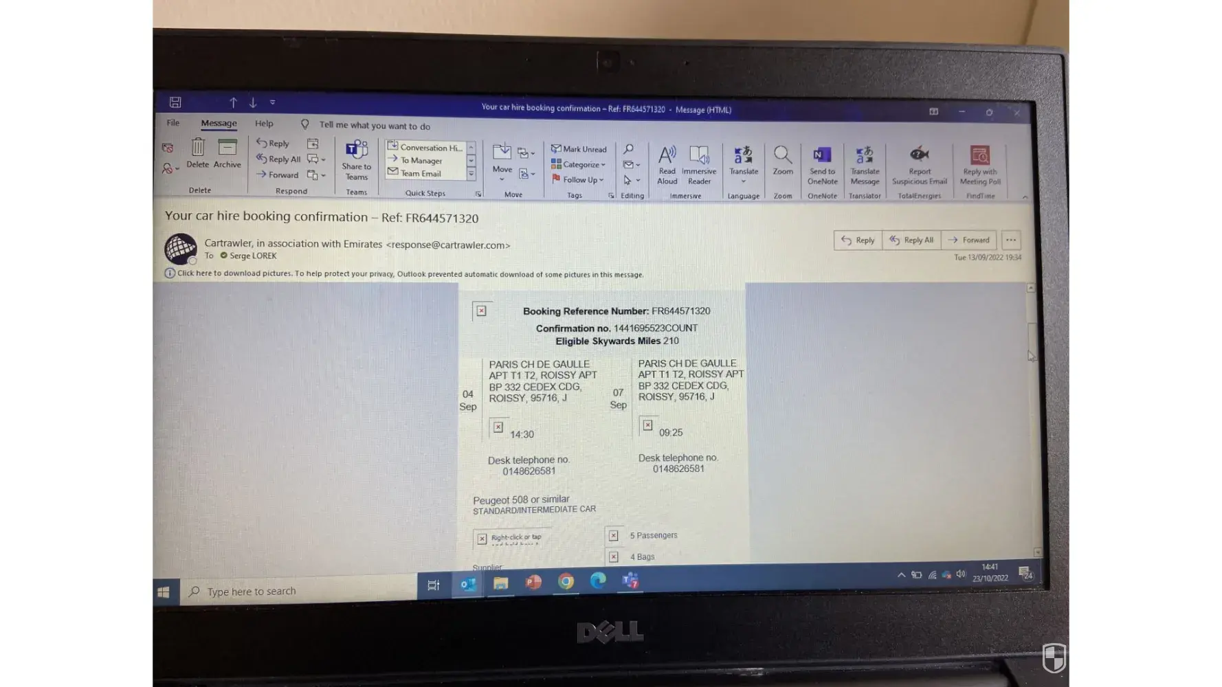 On September 2nd, 2022 I tried to make a booking for a car in Paris CDG airport from 4 Sept to 7 Sept. I went through the whole process including online payment ( 209.94Euro) but did not receive the booking confirmation as usual.