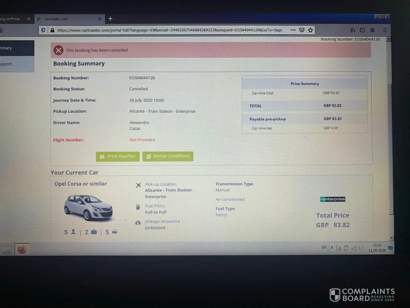 Cartrawler has done nothing to prevent this from happening and when I contacted them about it, their view was that it was a shame, but they can't help.