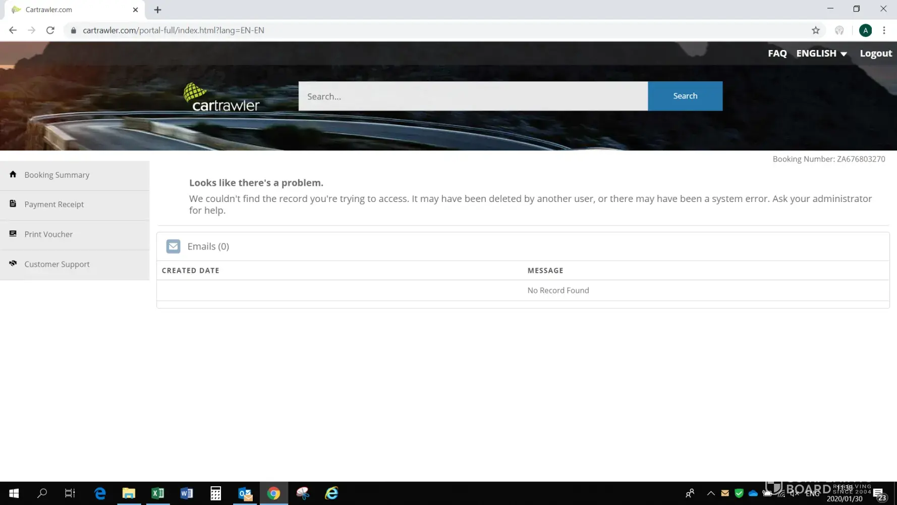 I booked a car hire with CarTrawler on the 24th of January- for pick up on the 28th (Lanseria Airport, South Africa).
