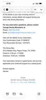 On 11/16/25, we reserved The Honey Bee Cabin located at 3212 Steeple Way, Pigeon Forge, TN 37863, for Thursday, January 1, 2026 through Sunday, January 4, 2026 (Confirmation # P116WKYF) for a total of $1,557.55 which was paid with our Visa Card. This is a three-bedroom, three-bathroom cabin which was going to fit our needs. We rented this cabin so we could...