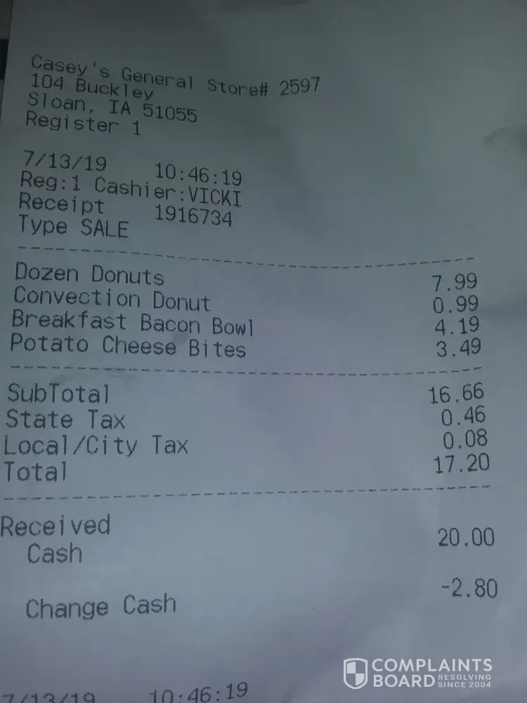 Read full complaintcashier