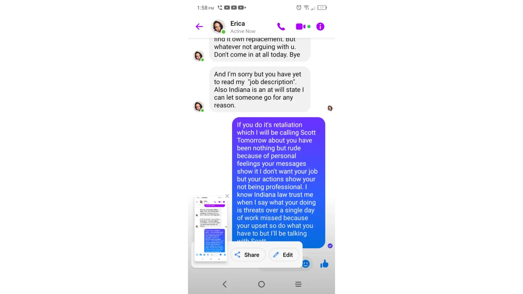 I was threatened last night that I was to work this weekend, we work every other weekend and she had confirmed this that same day (yesterday) same morning, then I received a threat of a write up.
