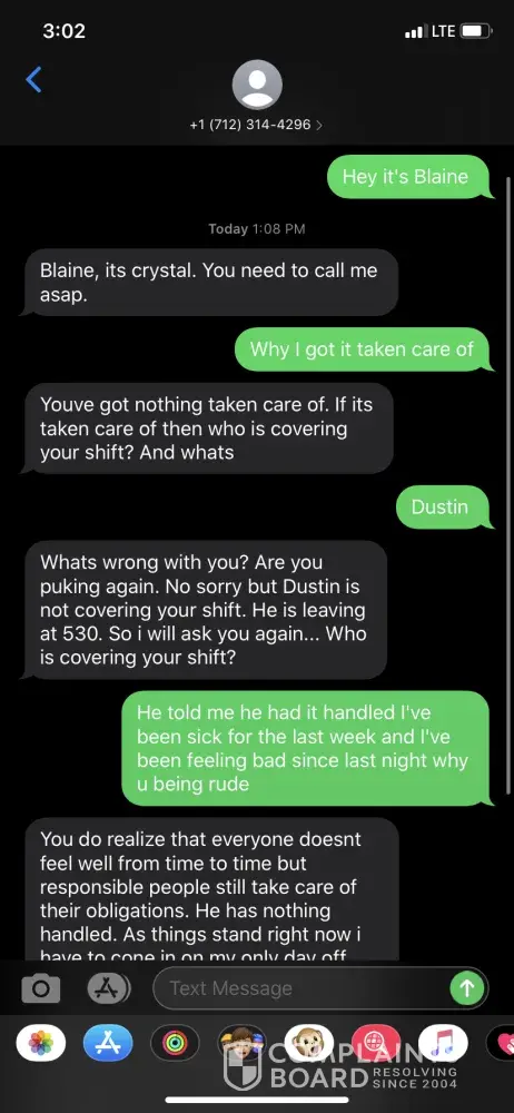 I work at caseys. And I am tired of being bullied I'm tired of the mangers posting on Facebook. I called off with a doctors not because I have a sever ear infection and I also have bronchitis. There for I can not preform like I would love to do. When I went in to hand in my note I was rudely talked to by the 2nd assistant manger. And I do not appreciate it...
