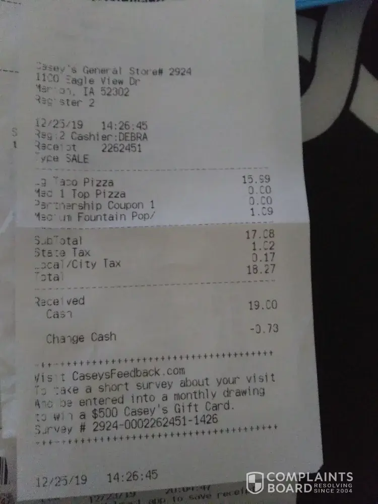 On Oct. 23rd, 2019 a Casey's employee stole a $300 lottery ticket from me. From the employee on up through corporate have done nothing but lie, dodge the truth, and then quit responding all together. The whole incident is on tape and it's documented. I'm not the first to have this happen at Casey's, let alone this particular one and I will not be the last...