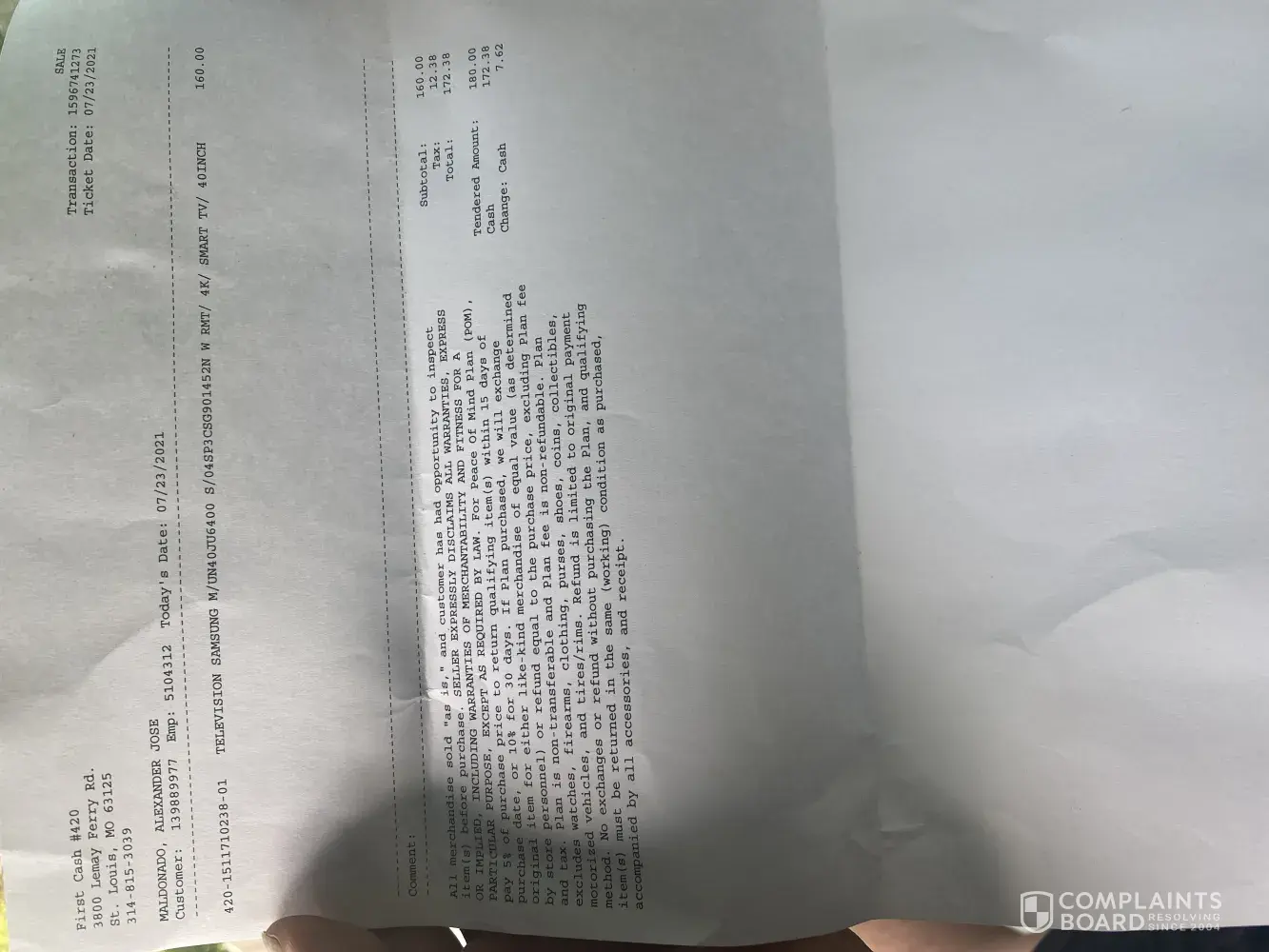 Complaint/ refund