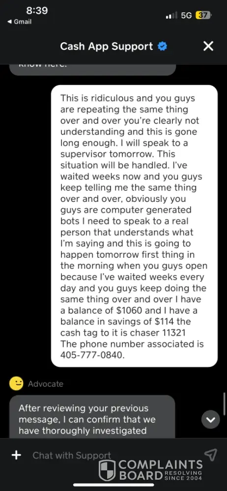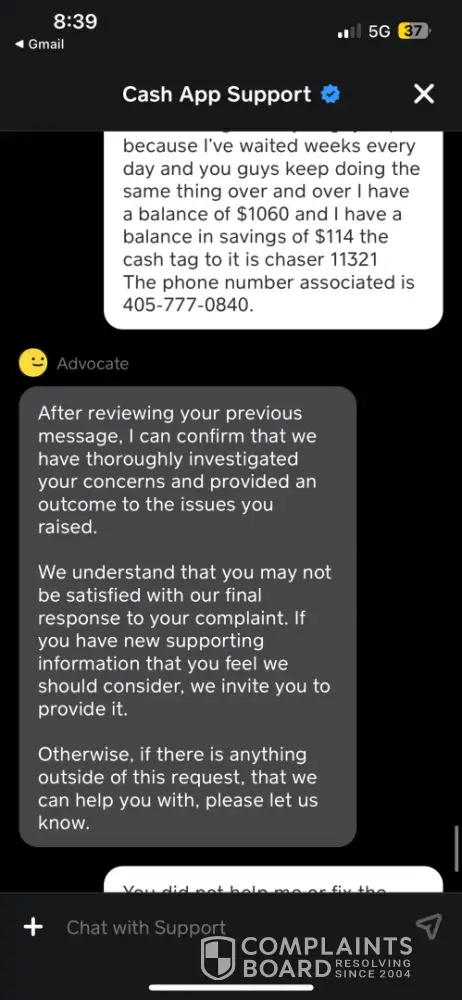 - While Cash App has a high level of trust, our investigation has revealed that the company's complaint resolution process is inadequate and ineffective. As a result, only 0% of 62 complaints are resolved. The support team may have poor customer service skills, lack of training, or not be well-equipped to handle customer complaints.