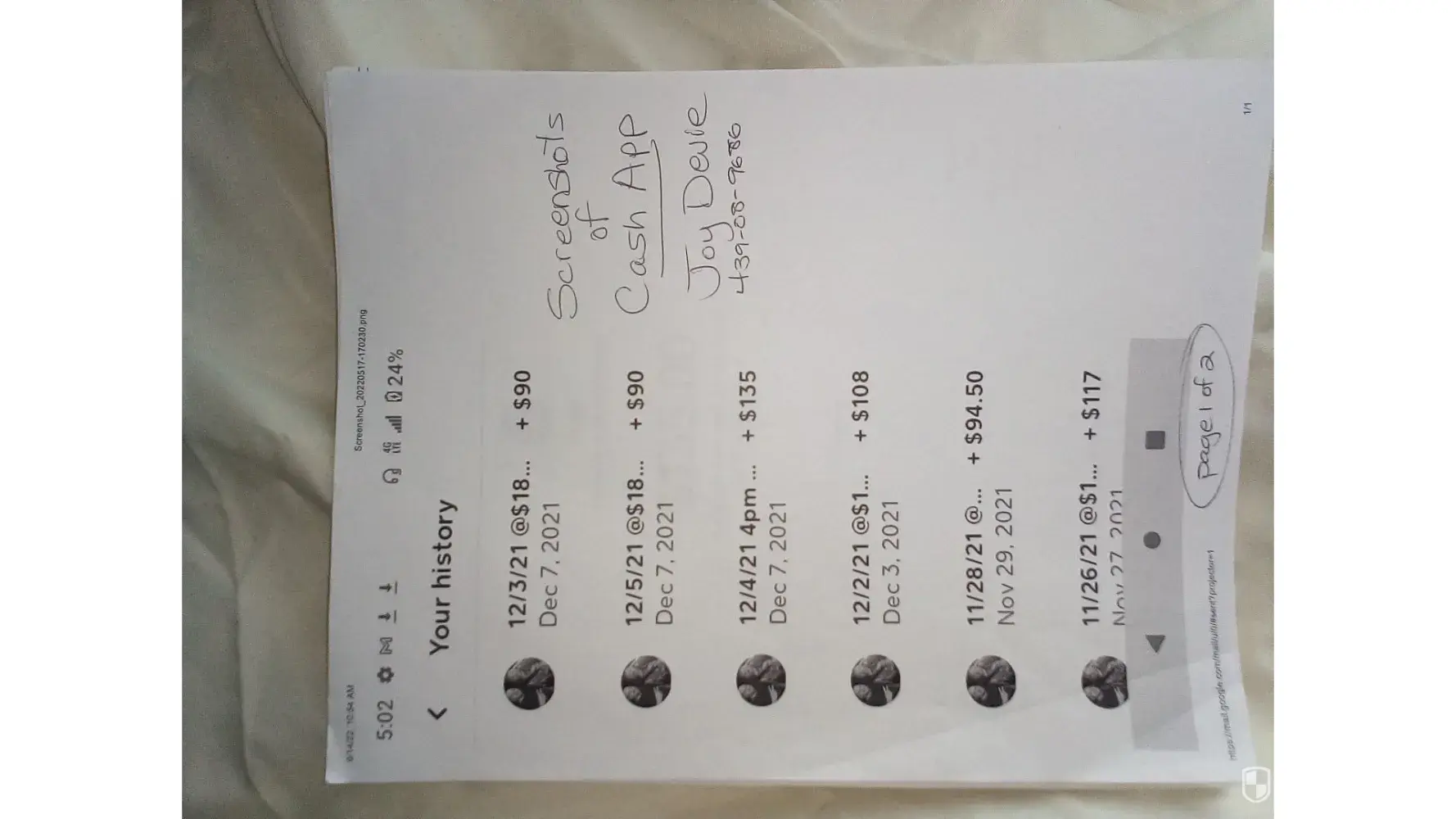 Cash App Payment not received.