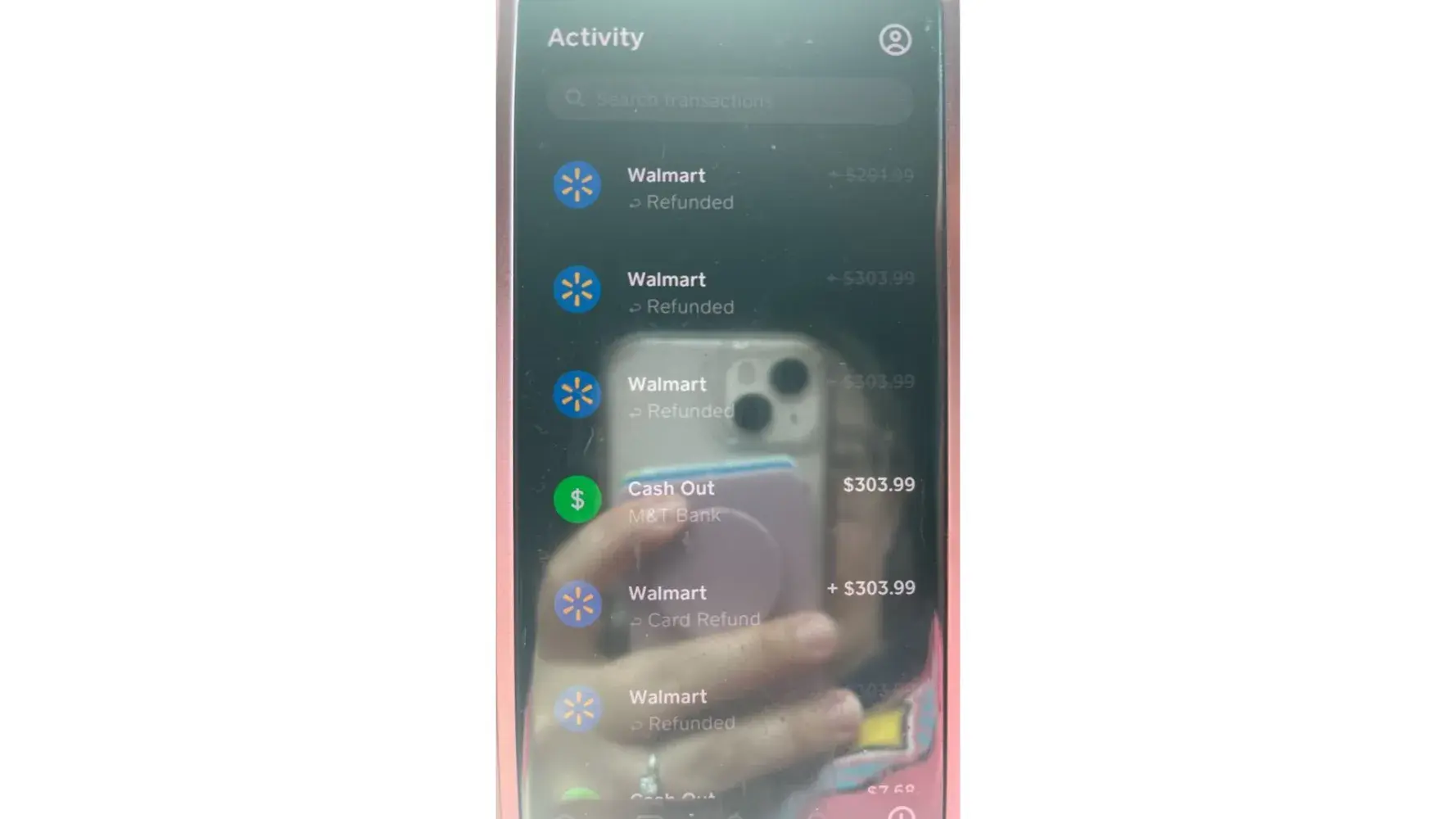 Desired outcome: All I need is the transactions (4 total) from Cash App.