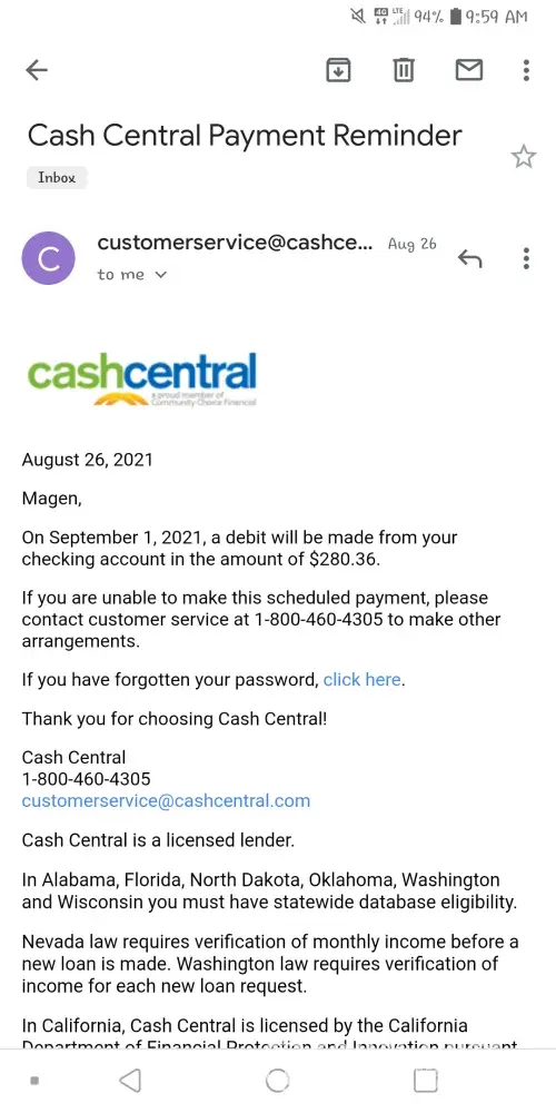 Read full complaint and 18 commentsIs Cash Central Legit?