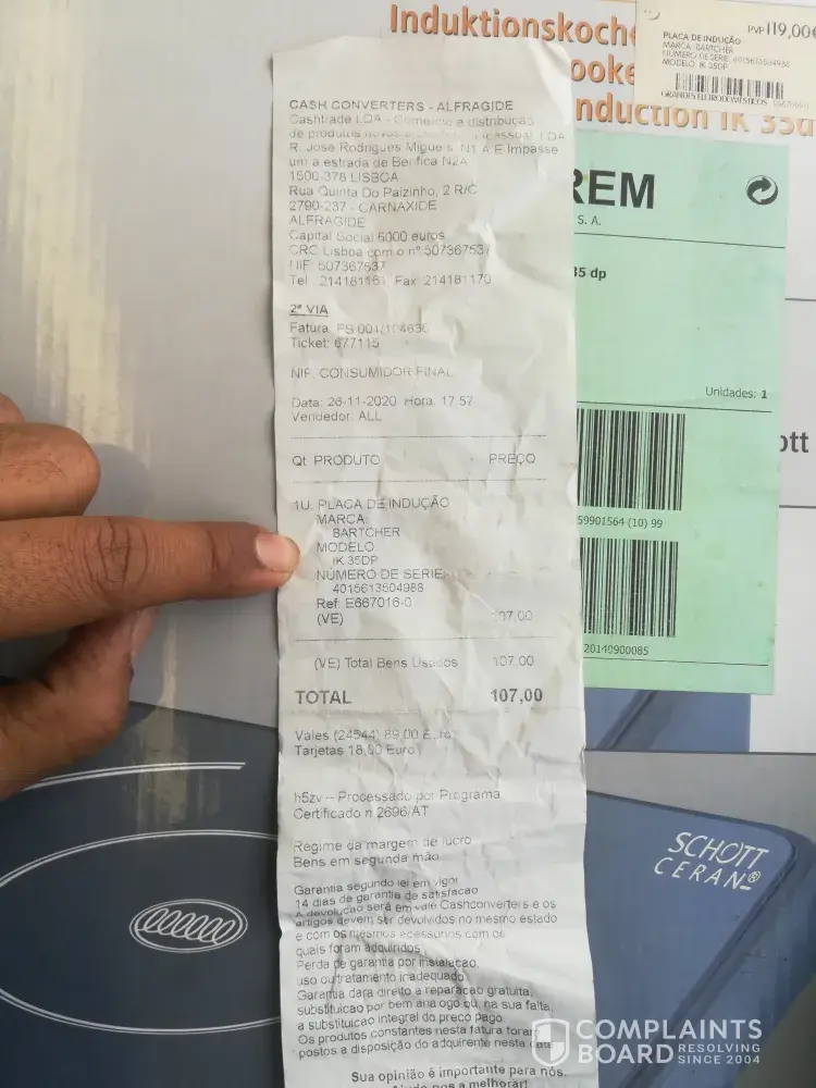 I was bought on induction stove from this store in 19, October, 2020 price was 90 euro after 2 month its stop working i was go there give it for repair because its in warranty they keep it for 30 days after 35 days I was go there for collect my product they told because of covid - 19 its not come Beck so there is one mor industion stove which price is 120 euro so I buy that product and paid the other amount of money but its same after buying in 3 month its also stop working when I was go there for one more time for repair they keep it for 30 days and after 33 days when I go for collect they told me its your problem we can't repair it when I ask for some proof for decliney warranty they don't give me anything thing they told they don't have and manger of this store talk with me so rudely and they know I can't speak Portuguese very good they don't talk with me in English and when I was asking for complain book they force me to write in portuguese.