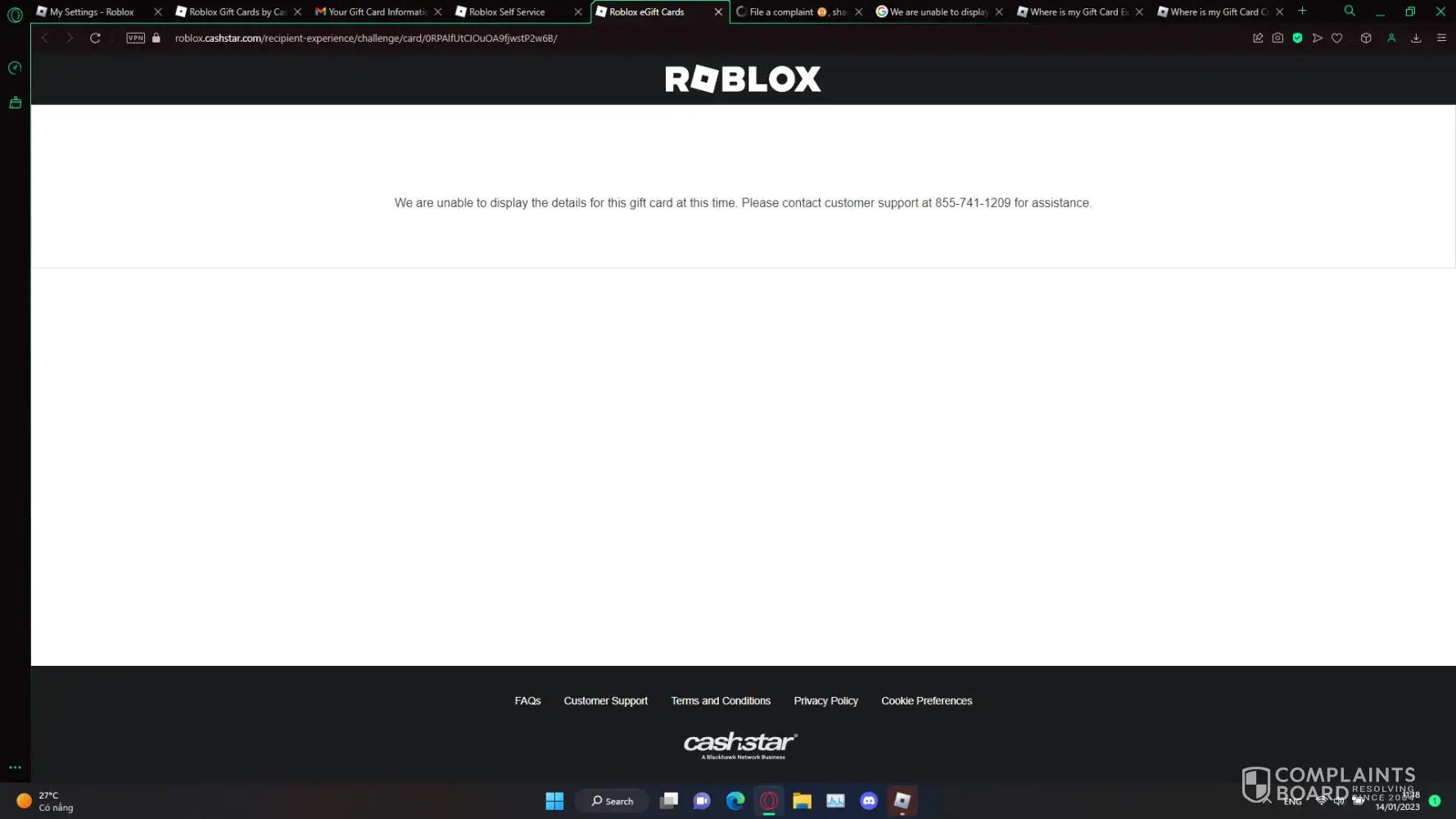 It's frustrating because it seems like CashStar doesn't care about its customers. They don't even try to solve the problems that their customers are facing. I'm surprised that they haven't gone out of business yet. If I were a company that relied on gift card sales like Roblox, I would refuse to work with CashStar because their bugs and cancellation of purchases are hurting the business.