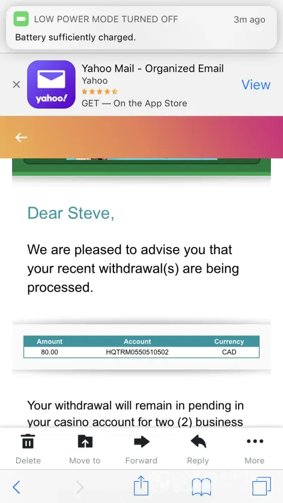 Even the emails they send about deposit bonus are from a scam bot that sends me lots of different kind of scams