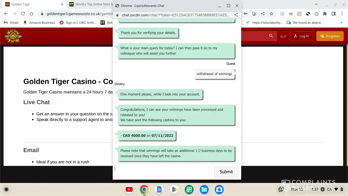 The reason why I'm coming on here now to make a complaint about casino rewards is the following: