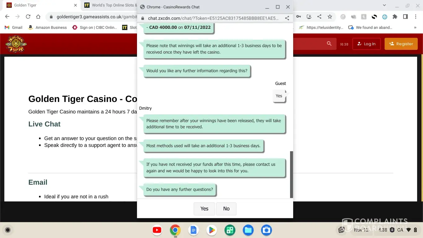 Did you get any results from the casino I need help collecting 30 grand from them and would like to touch base with you on getting my with drawls from them I need your help and am willing to pay for it even when I get the 34 grand not with drew from them please contact me at my email address clinejennifer81 that's gmail and its four oh three nine nine two fifty nineteen its Canada and am looking to make a stand and make them pay and need help and am willing to pay good money for good help contact me please I need your help here is attached proof of this and its exactly what happened to you happened to me also here is my proof thanks for your time willing to make this worth your while I really am