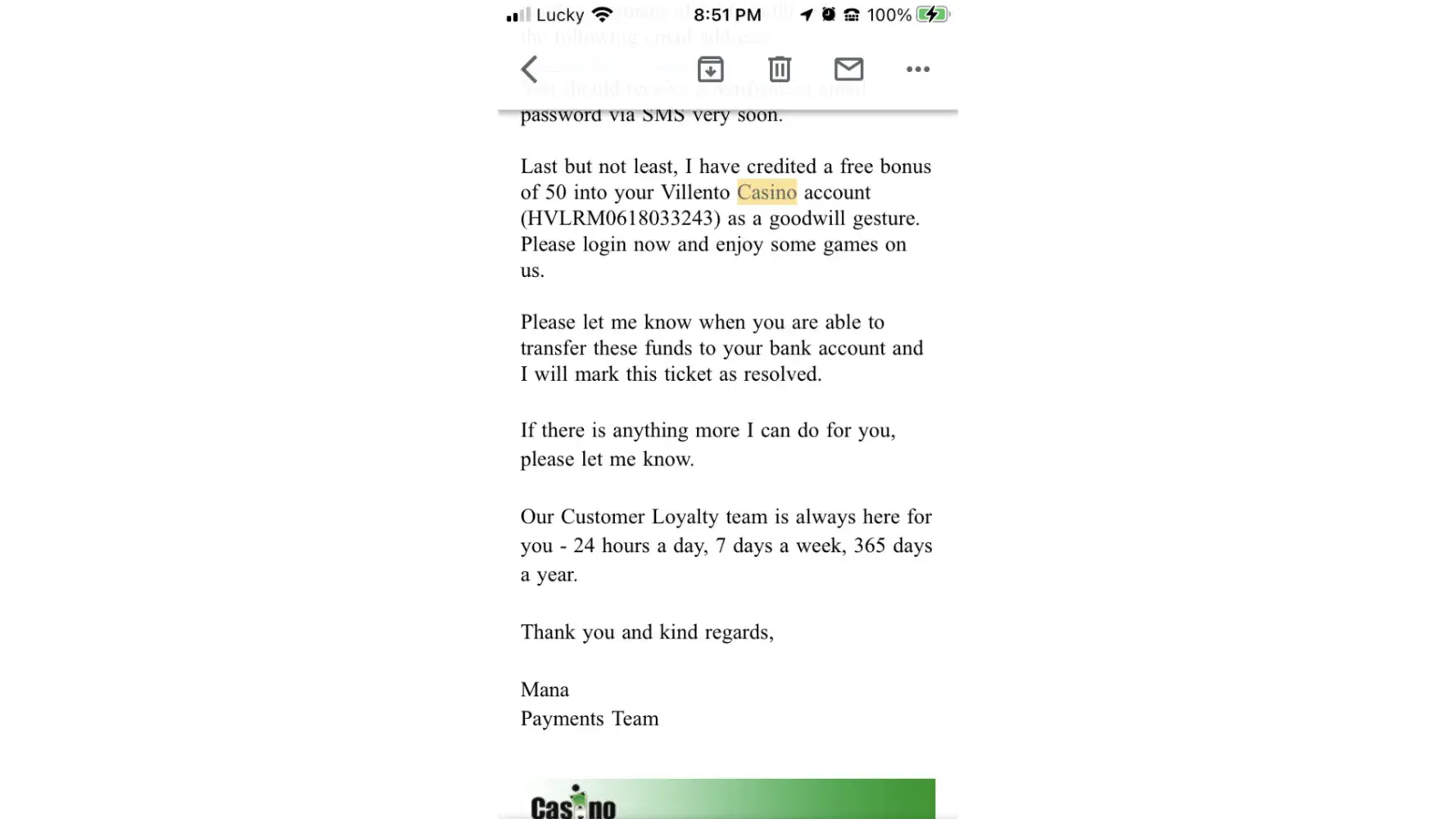 When they ask you produce records on my account it will also show I have played before and the account was never locked. The company will look like they don't want to pay out on a person that was given 50.00 and played thought it like required and won 1800.00 US from you.