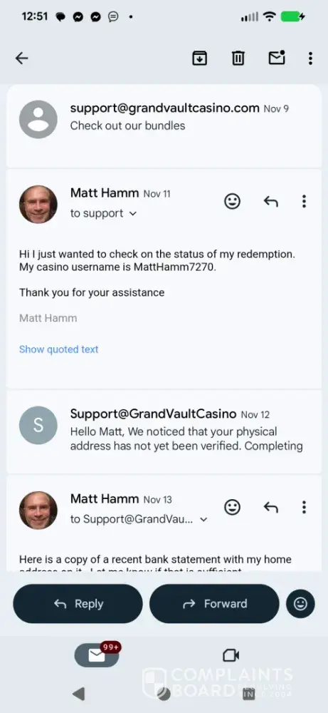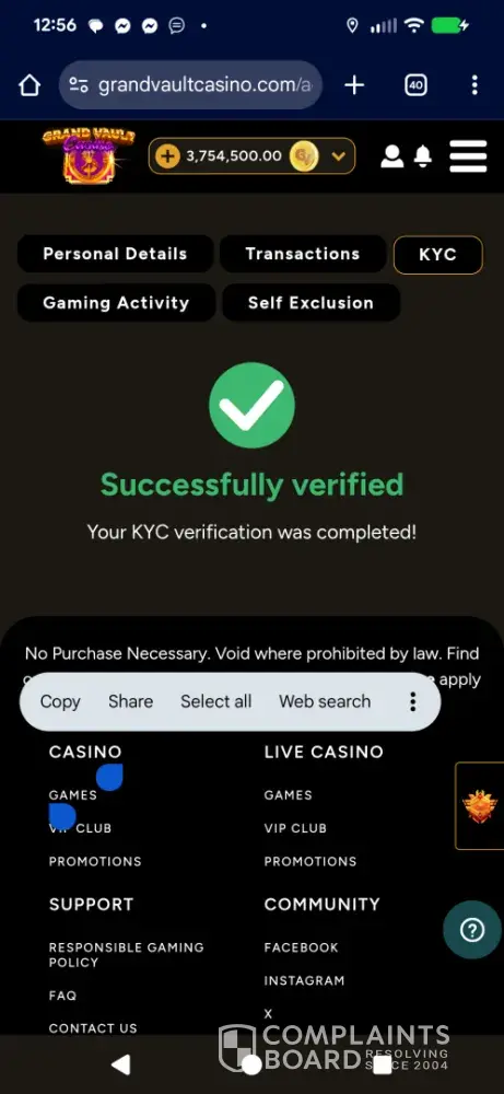 I became a registered user at the Grand Vault Casino on [protected], which operates as a sweeps casino. I purchased one of their Gold Coin Packages which provides the player with a large amount of gold coins, which can be used for recreational play only. The gold coins are basically worthless as they cannot be redeemed and have no monetary value, for someone...