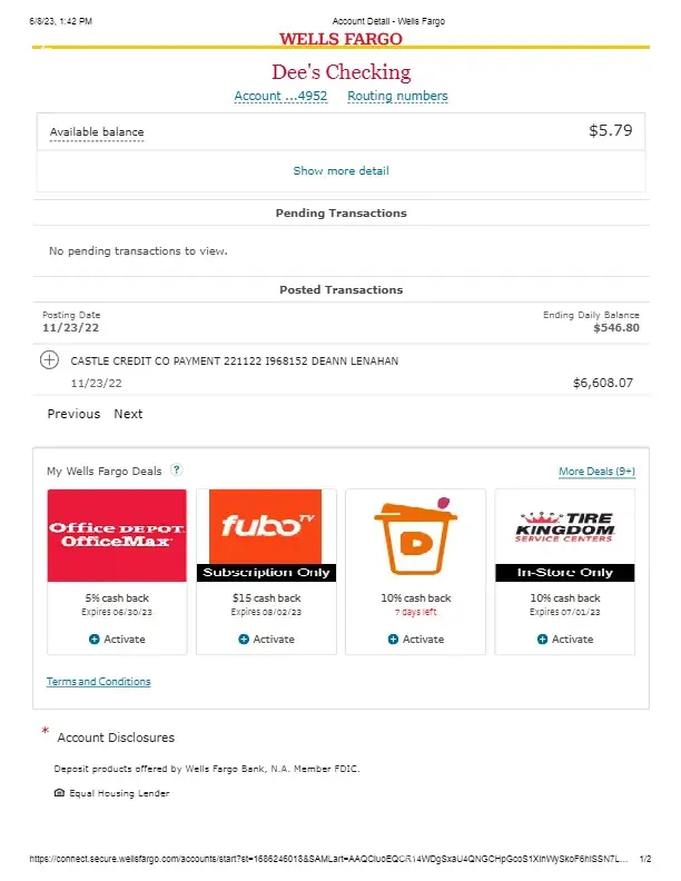Castle Credit Co Holdings Account # *** On July 20, three months after moving into our new home