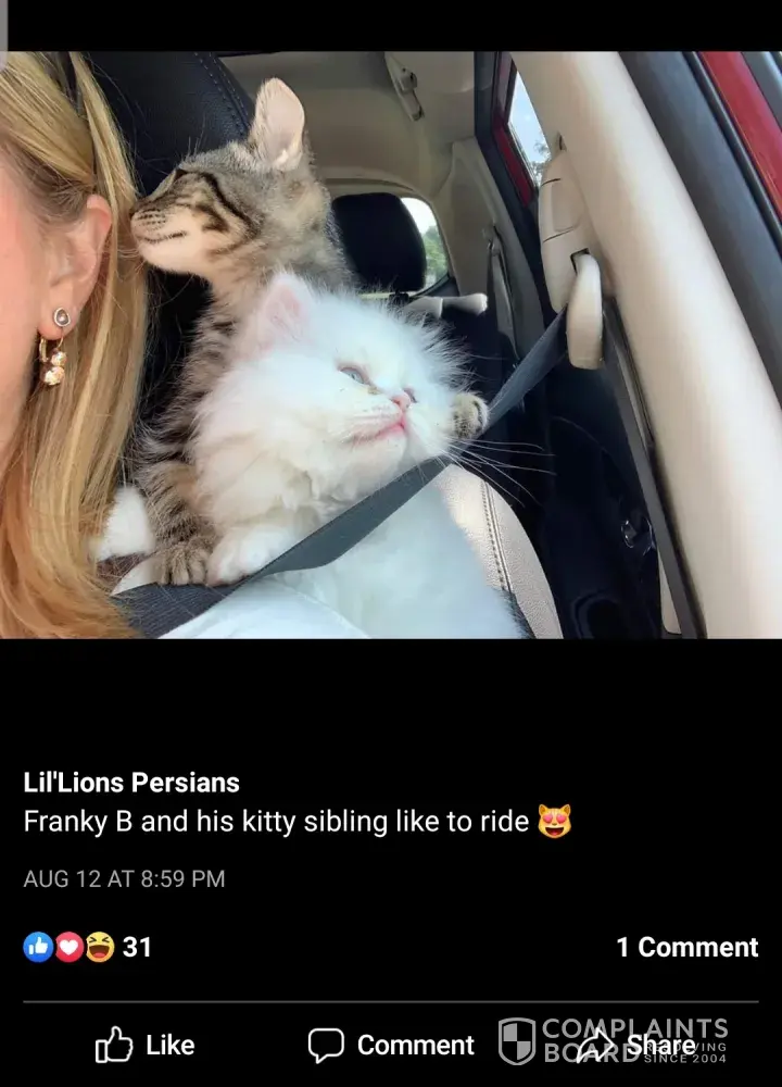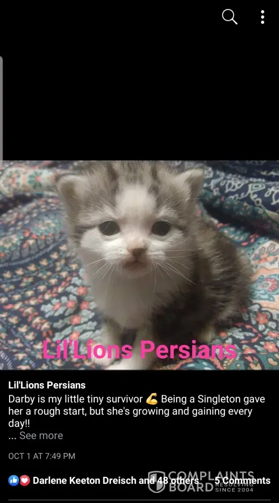 Read full complaintLil Lion Cattery Persian Jessica Lovett Couch - sells mixed breed kittens as persians to innocent people