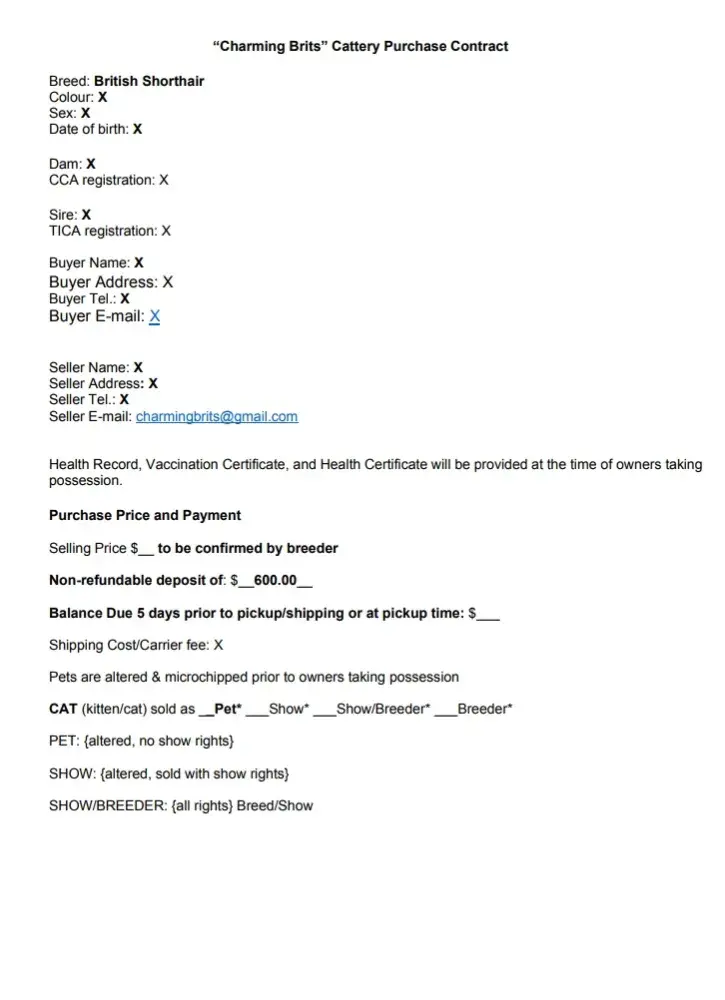 Never buy a kitten from that bad cattery and breeder! Force to buyer with unfair contract with no health guarantee! Selling fcov/fip infected kittens! Very expensive non-refundable deposit! Seller is no responsible! Just take your money! Do not waste your money and time! This breeder is such an evil! However, the evil breeder is registered in tica (the...