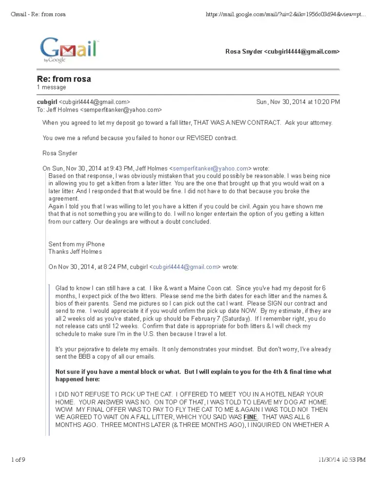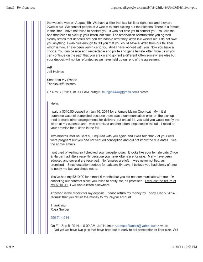Read full complaint and 9 commentsPawstuctaway Maine Coons - Horrible Breeder